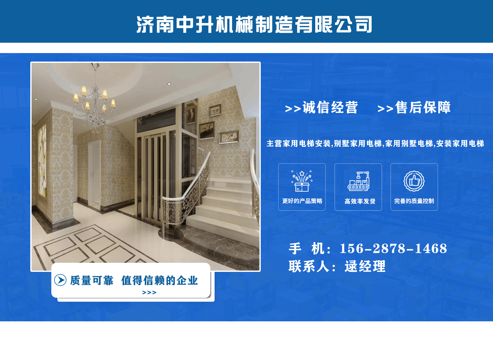 濟(jì)南中升機(jī)械制造有限公司主營家用電梯安裝,別墅家用電梯,家用別墅電梯,安裝家用電梯等業(yè)務(wù),質(zhì)量可靠,值得信賴! 公司為客戶提供免費(fèi)上門測量,根據(jù)實(shí)際情況1對1服務(wù),保障符合用戶需求,終身提供售后服務(wù),讓用戶買的舒心用的放心。匠心團(tuán)隊(duì),打造信賴產(chǎn)品,我們有團(tuán)結(jié)、奮進(jìn)拼搏的匠心團(tuán)隊(duì),為您提供可信賴的品質(zhì)保證。 從創(chuàng)立以來一直嚴(yán)格執(zhí)行質(zhì)量管理體系、環(huán)境管理體系等相關(guān)標(biāo)準(zhǔn)管理體系,“顧客滿意”是我們始終如一的追求。我們有屬于自己培養(yǎng)的安裝隊(duì)伍,24小時(shí)服務(wù)電話,為您提供可靠的服務(wù)與支持。 我們的愿景是建設(shè)國內(nèi)具有影響力的電梯公司,做城市美好空間的好伙伴。...